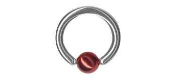 Anodized stainless steel ball on a captive bead ring for piercings.